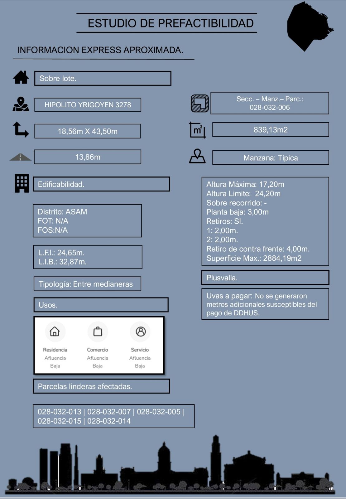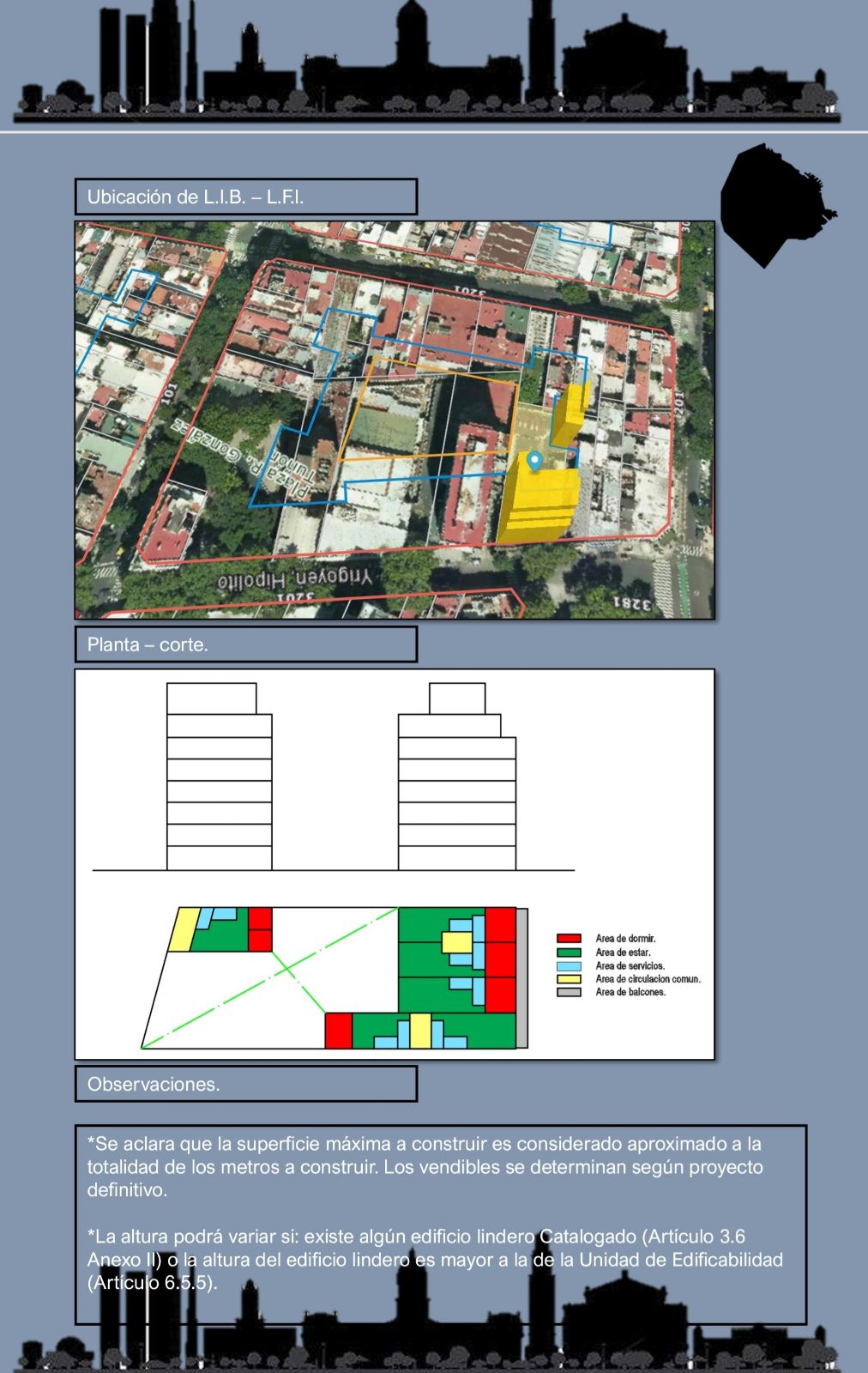 DOBLE FRENTE – Av Hipolito Yrigoyen * Superficie 837,00 M2 Fte: 18,34 Lateral: 45.64.